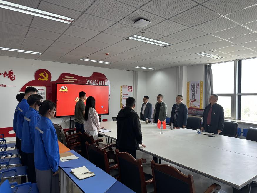 为进一步加强党员发展对象的培养教育,提升其政治素养和理论水平,2025年5月16日中午,365英国上市公司分党校2025年第一期党员发展对象培训班开班仪式在综合楼406室举行,开班仪式由公司党总支负责人主持,公司其他领导和各支部负责人参加了开班仪式。在高亢的国歌声中,本次培训班正式拉开帷幕。
