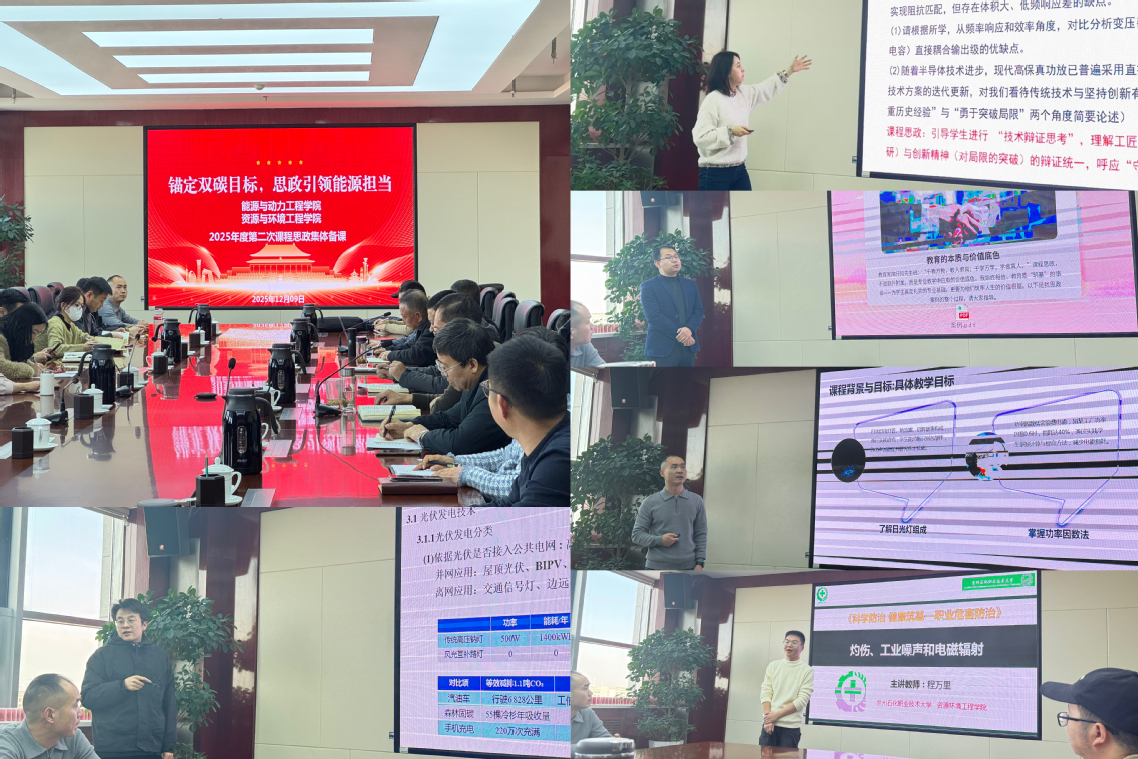随后,两院五位本年度优秀课程思政教学案例授课教师,依次进行了交流分享。其中孙晓鹏老师以地基承载力教学为依托,将责任担当与科学精神嵌入专业知识传递,实现专业筑基与品格铸魂的统一;张富老师围绕日光灯电路研究与功率因数优化,在实操探究中渗透严谨求实的科学思维;卢小合老师从身边路灯切入,借“双碳”实践向员工传递绿色发展理念与创新智慧;程万里老师聚焦职业危害防护技术,把健康守护的责任意识与科学防治的专业能力培养相结合;毛晓娟老师则深入探索“课程思政”与电子技术教学的融合路径,为专业课程思政的落地提供了可借鉴的实践范式。这些分享从不同维度打通了专业教学与价值引领的脉络,生动诠释了课程思政“润物无声”的育人效果。